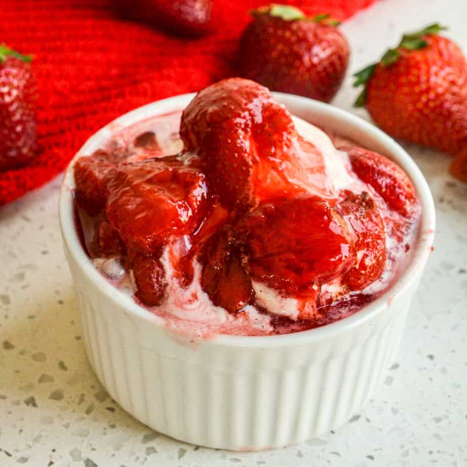 - If you prefer fewer chunks in your strawberry sauce, use an immersion blender to puree some of the strawberries. Go slowly and purree just enough to reach your desired consistency.