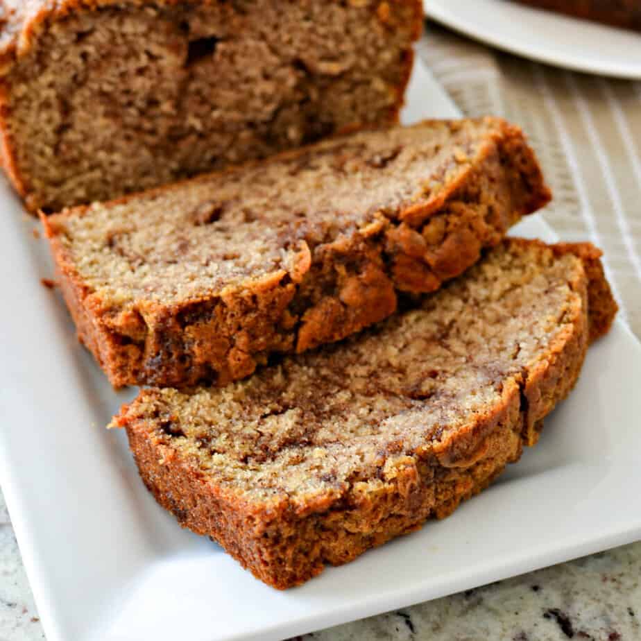 - Spoon the batter into a greased 9×5-inch loaf pan. In a small bowl, combine the brown sugar, flour, cinnamon, and butter. Sprinkle it over the bread and bake for about 55-60 minutes or until a toothpick inserted in the center comes out clean or with a few moist crumbs.