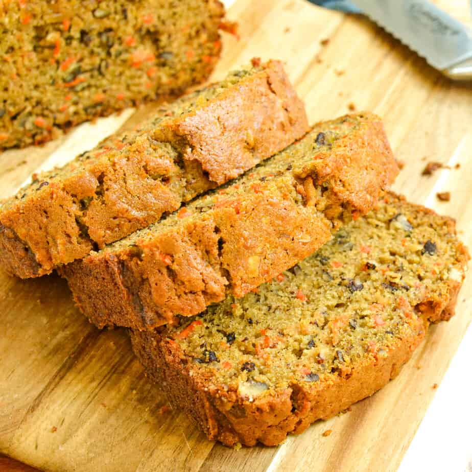 This scrumptious and moist carrot bread combines freshly grated carrots, shredded apples, chopped pecans, cinnamon, ginger, and nutmeg to make the best carrot loaf. It is one of my favorite quick-bread recipes and is so easy to make. If you love the flavor of carrot cake, this is a must-try recipe.