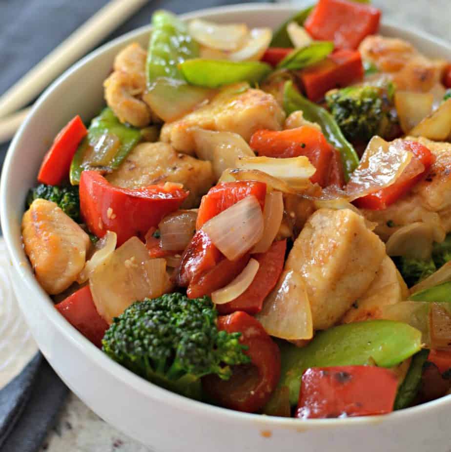 - 1 1/4 lbs. boneless skinless chicken breast cut into thin bite-size pieces or chicken thighs