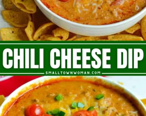 Looking for a quick and delicious snack for your next party? Look no further than this simple and tasty chili cheese dip recipe! Made with only a few ingredients, it’s sure to be a crowd-pleaser. It is easily adaptable to a crock pot to keep your favorite football munchies warm. When entertaining, I love to serve this with my Cowboy Caviar, Pigs in a Blanket, Little Smokies, and Ham and Cheese Sliders.
