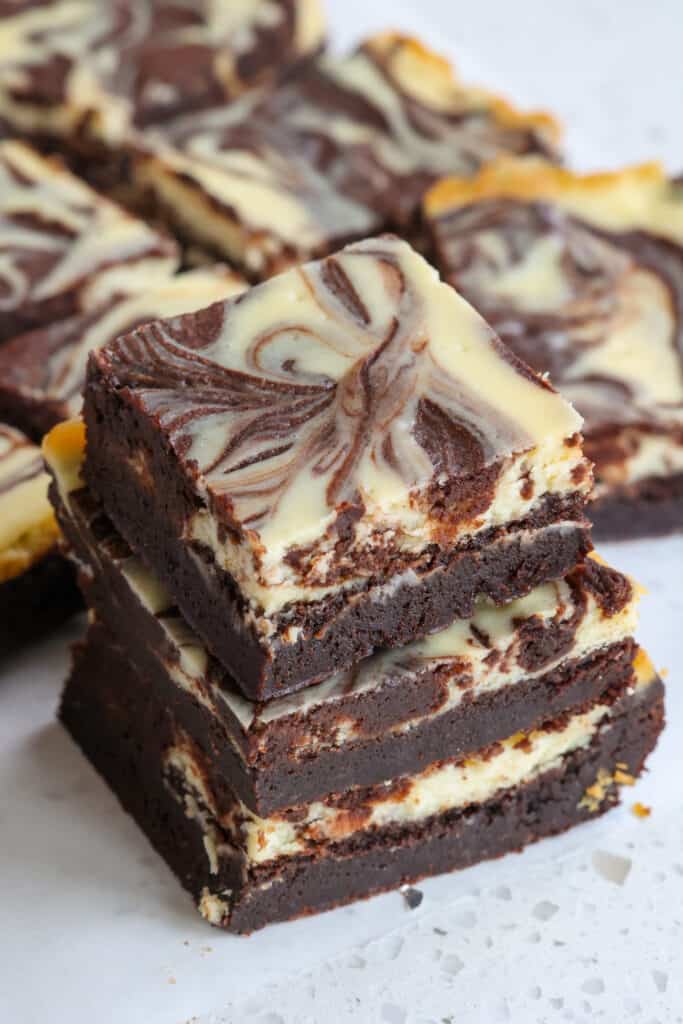 Indulge in the perfect balance of rich chocolate and creamy cheesecake with this easy and decadent brownie recipe. Impress your friends and family with these irresistible treats. This is one of our favorite brownie recipes with layers of chocolate brownies and cream cheese filling.