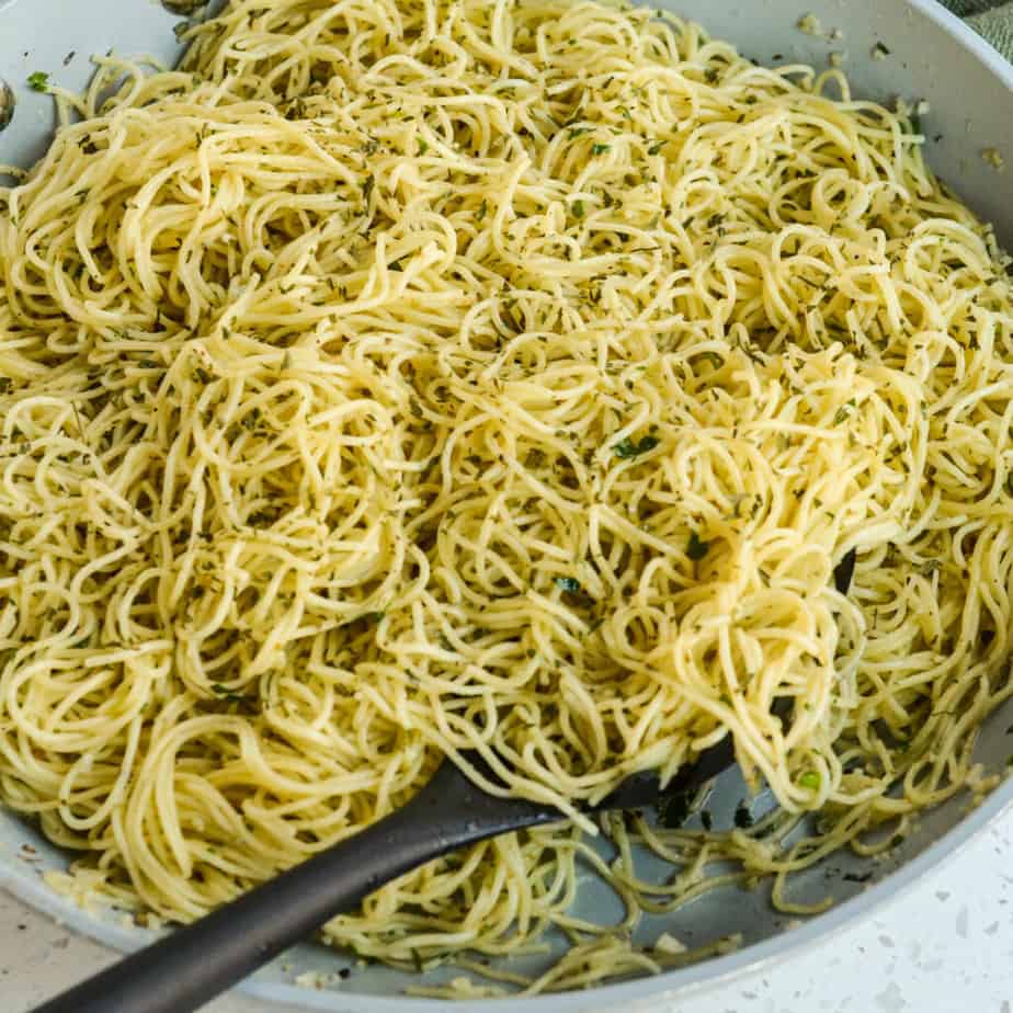 This quick and easy Garlic Pasta combines pan-roasted garlic, olive oil, and Parmesan cheese tossed with spaghetti and seasoned with fresh herbs like parsley and thyme. Enjoy this tasty pasta with roasted or grilled chicken or pork tenderloin, steak, or shrimp. Or for a vegetarian meal, a simple garden salad. Adjust the amount of garlic to your liking and surprise all the garlic lovers in your life.
