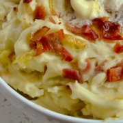 This traditional Irish Colcannon side dish is made with creamy mashed potatoes, swirled with fried cabbage, onions, and crisp bacon, and seasoned with salt and pepper. It's the perfect addition to any comfort food meal.