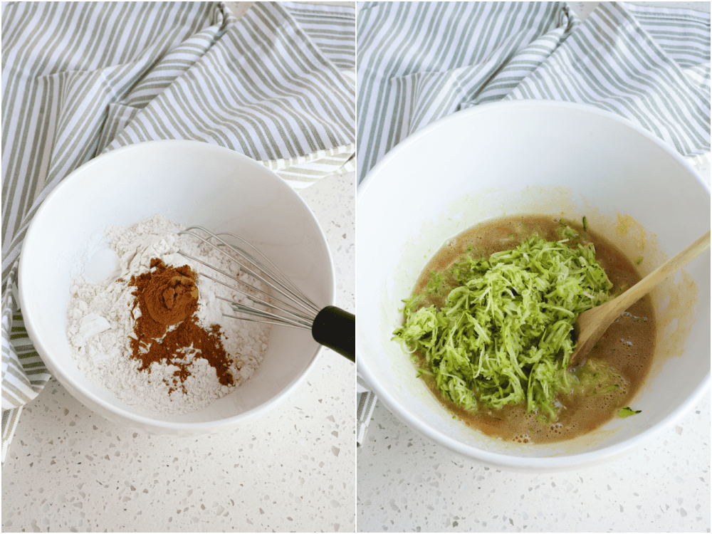 - Finely grate the zucchini so the muffins are speckled with fine bits of zucchini in every bite. Don’t worry about squeezing the moisture out of the zucchini.