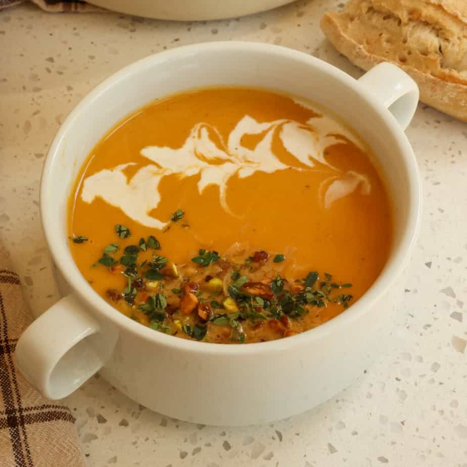 To freeze this soup, avoid adding the cream and kale until reheating. Remove the amount you will be freezing before adding these two ingredients. Let the soup fully cool and then freeze for up to 2 months in a heavy-duty freezer bag or freezer container. Thaw in the fridge overnight and reheat on the stovetop over low heat or microwave at reduced power.
